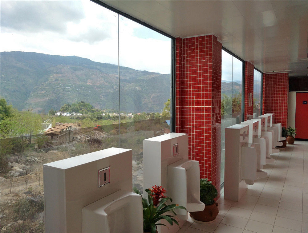 2017年4月7日,云南省大理州石門關景區(qū)的透明廁所。廁所外觀落地玻璃采用單透膜,讓游客邊上廁所,還可以邊欣賞景區(qū)優(yōu)美的風景。李明/視覺中國