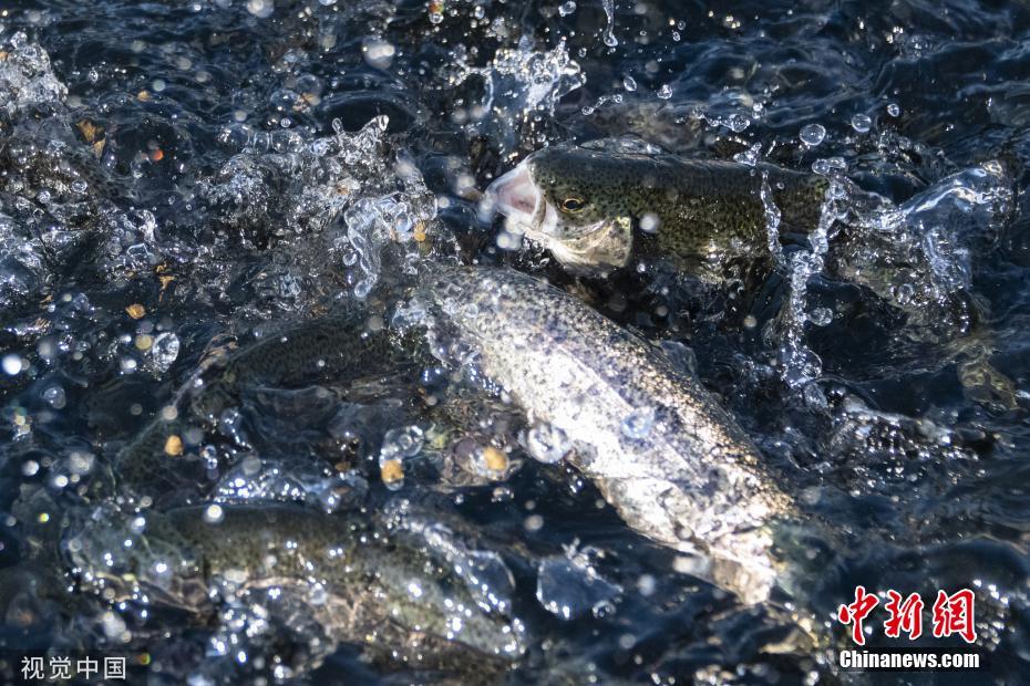 美加州鮭魚迎來(lái)洄游產(chǎn)卵季 集體逆流而上景象壯觀