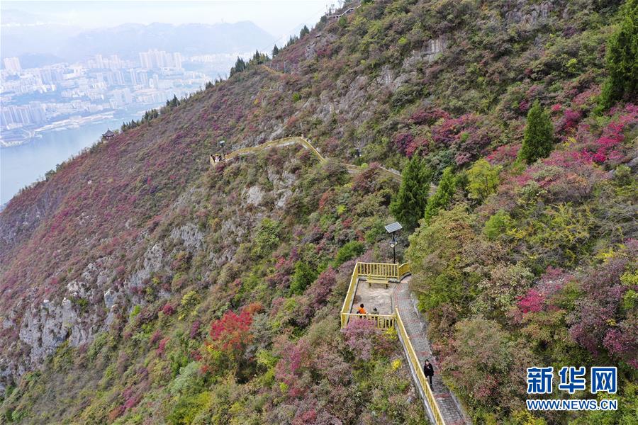 11月23日,游客在位于長江巫峽段的巫山文峰景區(qū)游覽。初冬時節(jié),位于重慶巫山縣境內(nèi)的長江巫峽段呈現(xiàn)出一江碧水東流、兩岸層林盡染的秀美景象。新華社記者王全超攝