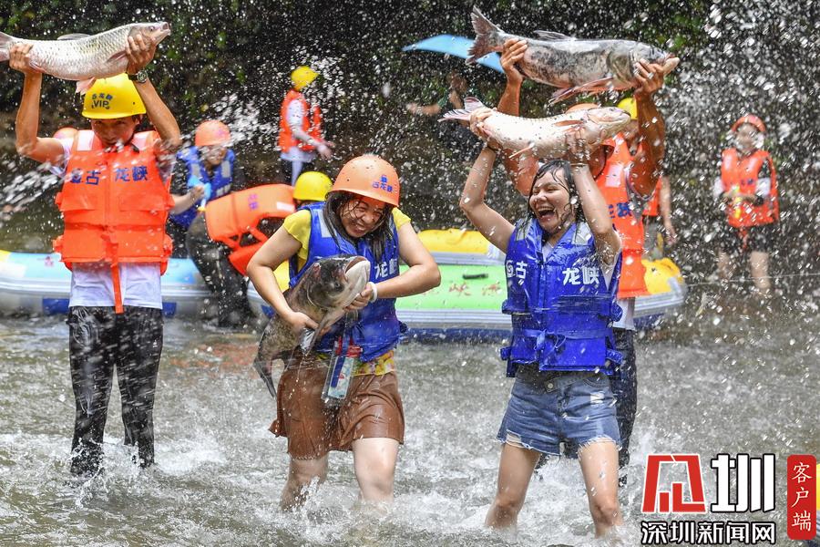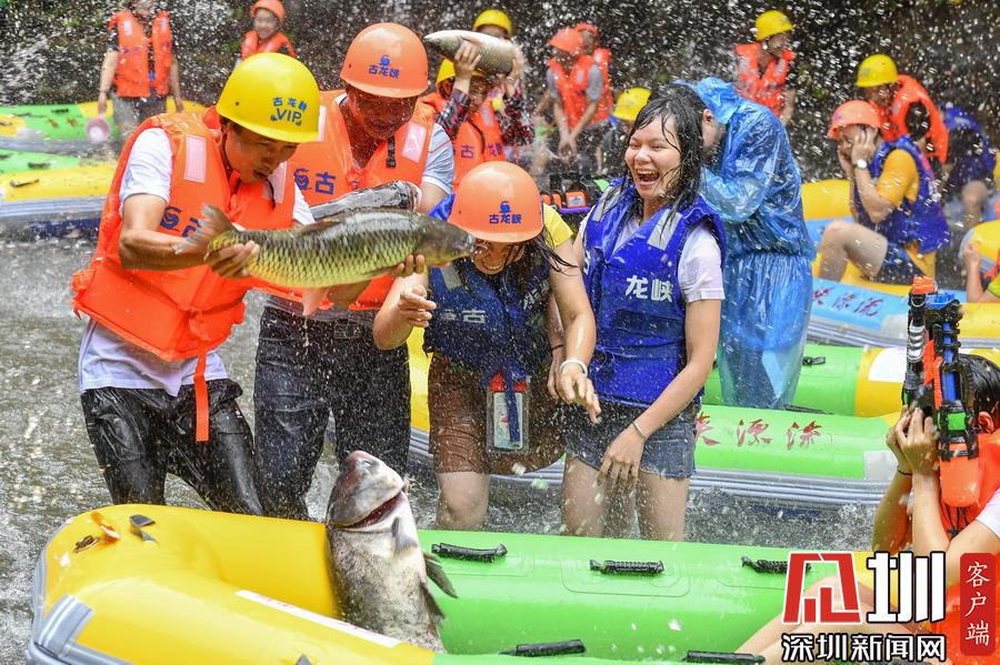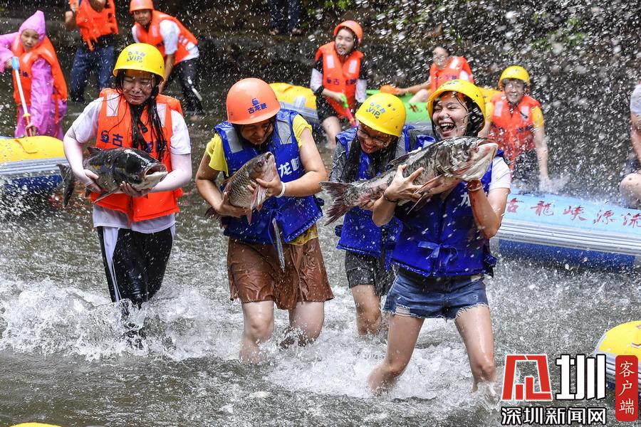 “韋帕”剛登陸廣東,清遠(yuǎn)古龍峽漂流景區(qū)就開始泄洪,上萬斤水庫大魚隨著泄洪道“越獄”,引來上千名游客下艇捕魚,漂流河道上演了幾個小時的“人魚”大戰(zhàn),有的捕魚高手竟然捉了一漂流艇的魚回家。
