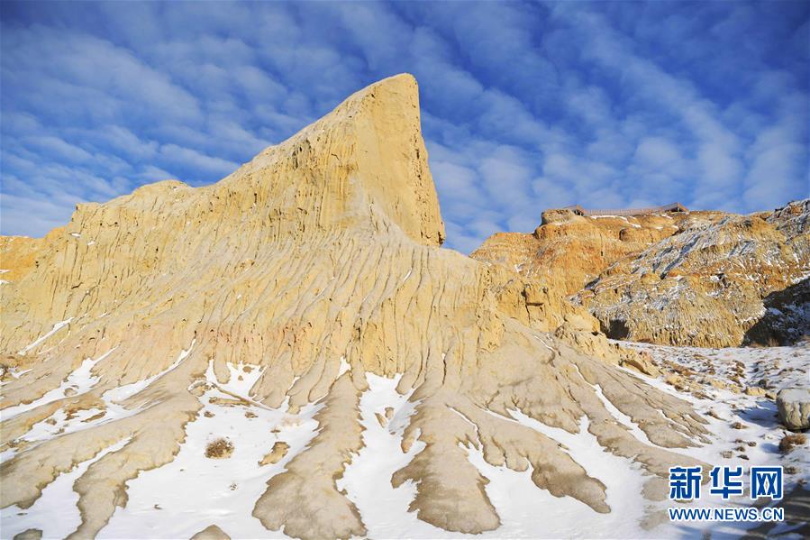 11月26日拍攝的新疆福海縣烏倫古湖海上魔鬼城景區(qū)美景。福??h烏倫古湖海上魔鬼城景區(qū)位于新疆阿勒泰地區(qū)福??h吉力湖東岸,有著獨特的雅丹地貌和水域景觀,是當地著名的旅游勝地。新華社記者沙達提攝