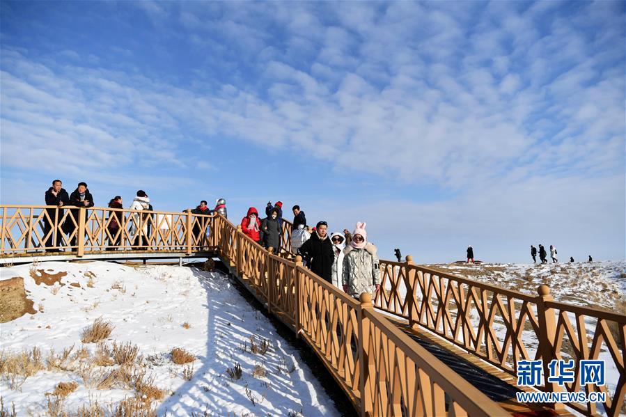 11月26日,來自全國百家旅行社的旅游業(yè)界人士在新疆福海縣烏倫古湖海上魔鬼城景區(qū)參觀。新華社記者沙達提攝