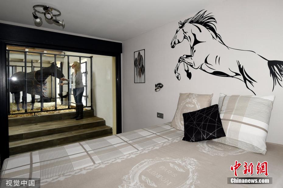 當?shù)貢r間2019年11月25日,法國桑圖瓦地區(qū)弗賴斯內,一家特別的“酒店”開張,入住者可以透過玻璃清楚的看到馬廄里的馬,還可以跟馬親密接觸。圖片來源:視覺中國