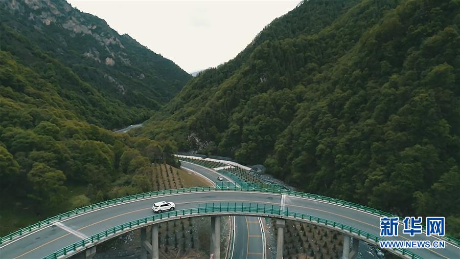 6月11日,一輛汽車在青海省扎隆溝至碾伯鎮(zhèn)公路上行駛(無人機拍攝)。新華社記者張宏祥攝