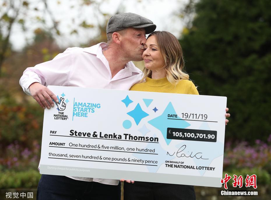 當(dāng)?shù)貢r(shí)間11月26日,英國(guó)奇切斯特一對(duì)普通工作者幸運(yùn)贏得足以改變?nèi)松莫?jiǎng)金——1.05億英鎊。圖片來(lái)源:視覺中國(guó)