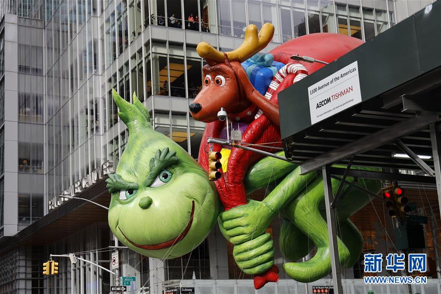 11月28日,在美國紐約舉行的感恩節(jié)大游行上,卡通氣球行進在曼哈頓街頭。 新華社記者 李木子 攝