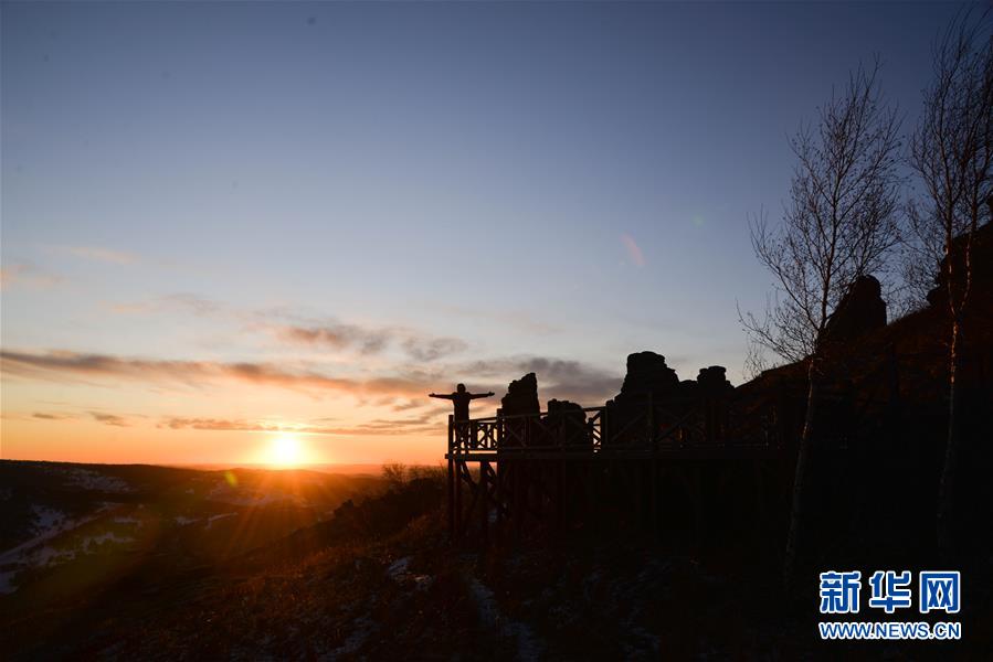 這是11月25日拍攝的克什克騰石陣景區(qū),一名游客張開雙臂面向夕陽。 克什克騰石陣景區(qū)位于內(nèi)蒙古赤峰市克什克騰旗,是國家5A級(jí)景區(qū)。冬日黃昏,在落日和晚霞的映襯下,克什克騰石陣景區(qū)一派壯美景象。