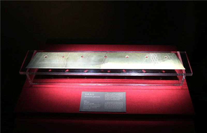2019年10月19日,河南洛陽(yáng),二里頭夏都遺址博物館?!捌呖子竦丁笔嵌镱^夏都遺址出土的最大的玉器。