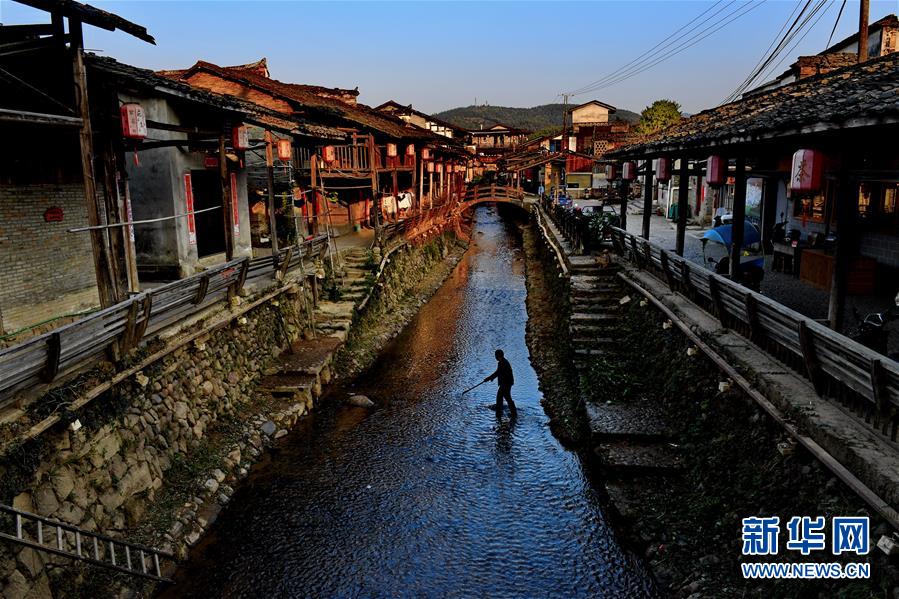 游客在武夷山下梅村游覽(11月5日攝)。福建省武夷山市下梅村是“中國歷史文化名村”,這里歷史悠久,人文薈萃,至今保存著70余幢明清時代的古民居。人工運河穿村而過,古民居、涼亭、古街等構成了別具特色的江南水鄉(xiāng)風景。新華社記者馬平攝