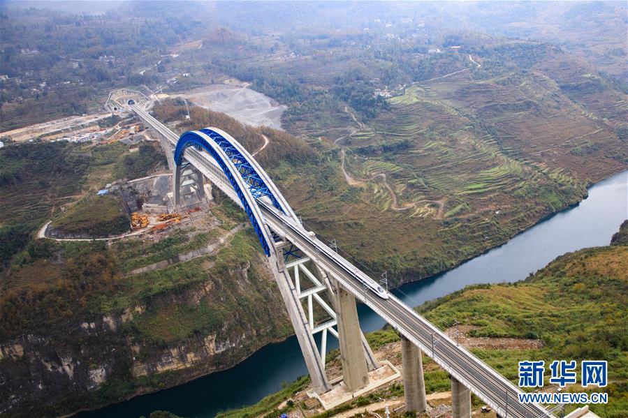 12月2日,一輛試驗列車駛過成貴高鐵鴨池河特大橋。當(dāng)日,正在進(jìn)行聯(lián)調(diào)聯(lián)試的成貴高鐵進(jìn)入全線拉通空載模擬運行階段,試驗列車將在成都到貴陽區(qū)間內(nèi)全線路運行。線路全長650公里的成貴高鐵是我國“八縱八橫”高速鐵路網(wǎng)的重要組成部分,設(shè)計時速為250公里。新華社記者劉續(xù)攝