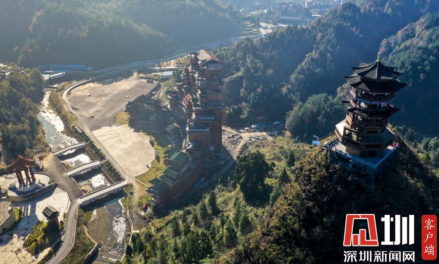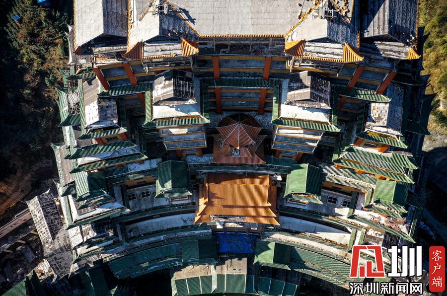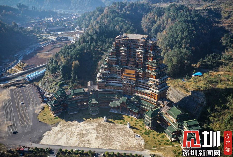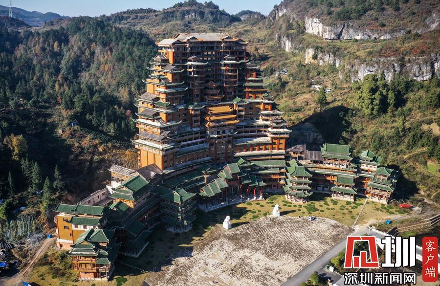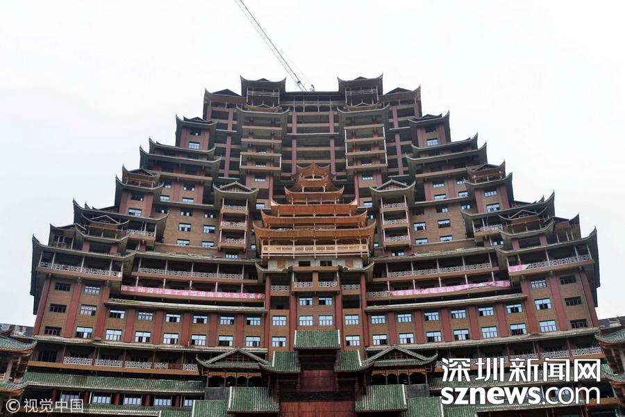 2019年12月8日,貴州省黔南布衣族自治州。位于獨山縣影山鎮(zhèn)凈心谷的水司府堂占地面積5900平方米,總建筑面積60000平方米,共24層,高99米,進深240米,是世界上最高最大最壯觀的水族建筑,被稱為“天下第一水司樓”。