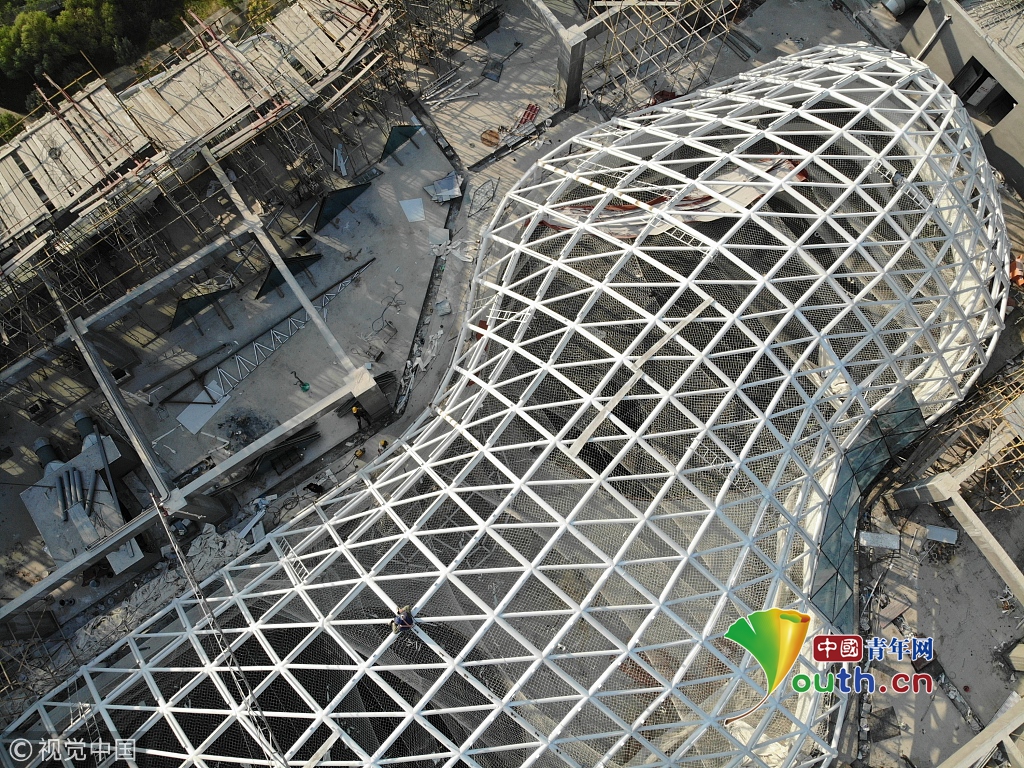 據(jù)了解,這棟大樓的用途為寫字樓,設計為全玻璃幕墻結構,頂部的框架也將裝上玻璃。