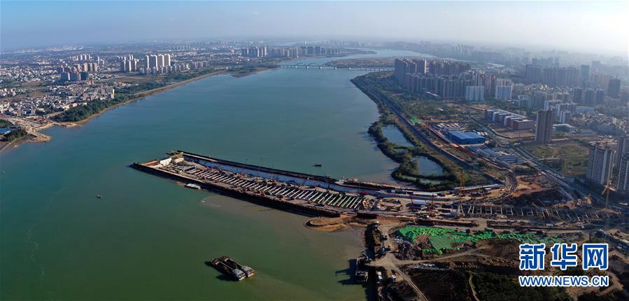 正在施工的海口文明東越江通道項目(12月14日無人機(jī)拍攝)。 ??谖拿鳀|越江通道項目是連接??谥鞒菂^(qū)和江東新區(qū)的重要紐帶,2018年底開工,全長4.38千米,其中隧道段2.72千米。據(jù)了解,目前項目總工程量已過半,將力爭在2020年4月份建成并實現(xiàn)功能性通車。 新華社記者 郭程 攝