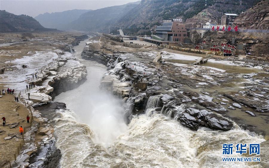 12月14日,游人在壺口瀑布景區(qū)游玩(無人機(jī)拍攝)。 位于秦晉大峽谷的黃河壺口瀑布,冬日水量較夏日雖然有所減少,但驚天動(dòng)地的濤聲依舊,周圍石壁上的冰掛與河中的浪濤構(gòu)成一幅獨(dú)特的北國(guó)風(fēng)光圖,吸引游客前來觀賞。 新華社記者 陶明 攝