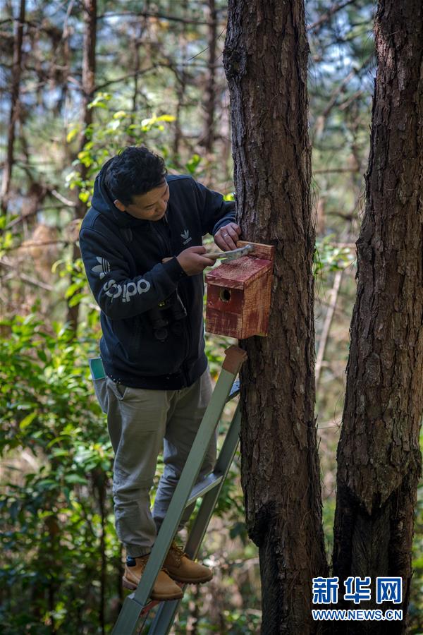 羅康在哀牢山的松樹林里查看上一批人工巢箱的鳥類入住情況(12月12日攝)。 31歲的羅康是云南省瀾滄縣人,從事鳥類生態(tài)學(xué)研究已有8年時間。作為中科院鳥類繁殖學(xué)的在讀博士,羅康離開城市,一頭扎進(jìn)哀牢山深處,以森林為家,與鳥兒為伴。 羅康在研究過程中發(fā)現(xiàn),由于松林內(nèi)天然樹洞很少,導(dǎo)致食蟲鳥類(主要為洞巢鳥)的繁衍與生存質(zhì)量受到較大影響。查閱大量資料后,他決定學(xué)習(xí)西方國家應(yīng)用比較廣泛、已有100多年歷史的人工巢箱,為這些鳥兒搭建“別墅”。 目前,羅康已安置人工鳥巢500余個,共有遠(yuǎn)東山雀、綠背山雀、黃頰山雀等7種鳥類入住,總體入住率約25%。他還在部分人工巢箱里裝上攝像頭,用于研究鳥類的生活習(xí)性。 “通過對人工鳥巢里的視頻錄像進(jìn)行分析,我們發(fā)現(xiàn)入住鳥類以松毛蟲喂食幼鳥的比例非常高?!绷_康表示,安置人工鳥巢不僅能幫助鳥類在森林中安家落戶、繁衍生息,也能有效防治森林病蟲害。明年一月底前,他將再安置500個人工巢箱。 新華社記者 胡超 攝