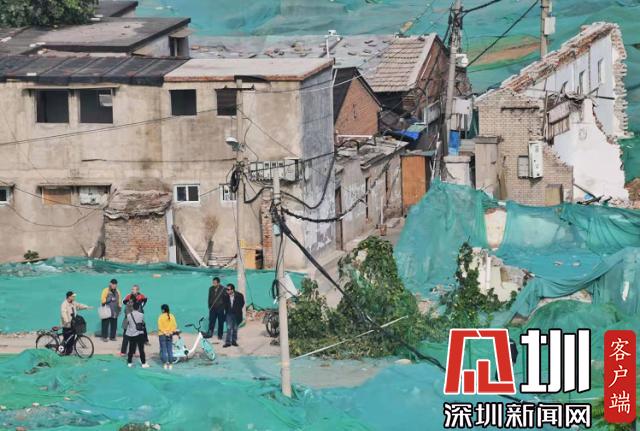 圍擋內(nèi),工地大部分被綠色苫布覆蓋,只露出幾處規(guī)整的探坑。考古工作者正在緊張忙碌中,有些工作人員戴著草帽,坐在馬扎上記錄發(fā)掘細(xì)節(jié),還有一些穿著藍(lán)色背心的工作人員使用工具正在做清理工作。