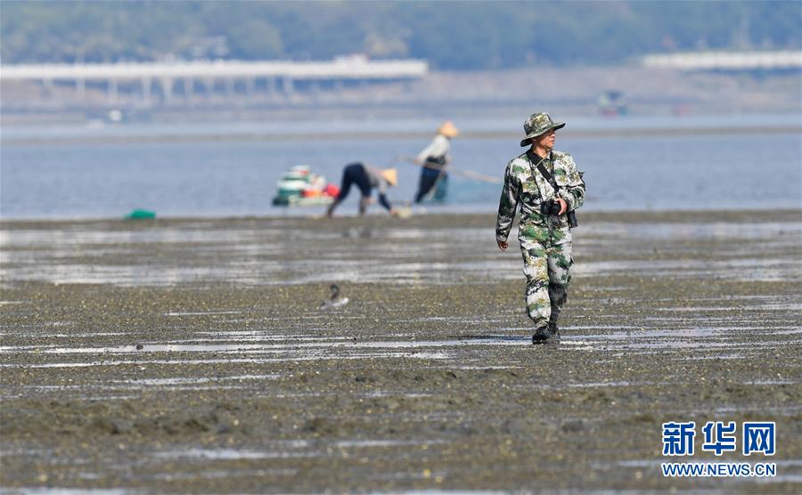 海南儋州新英灣紅樹(shù)林市級(jí)自然保護(hù)區(qū)護(hù)林員陳正平在保護(hù)區(qū)內(nèi)的灘涂上巡護(hù)(12月10日攝)。陳正平2010年開(kāi)始在保護(hù)區(qū)工作,他將工作發(fā)展成愛(ài)好,廣泛參加各種培訓(xùn)和業(yè)內(nèi)交流。他在工作中拍到瀕危鳥(niǎo)類(lèi)白肩雕出現(xiàn)在海南的照片,這刷新了海南省的鳥(niǎo)種記錄。新華社記者楊冠宇攝
