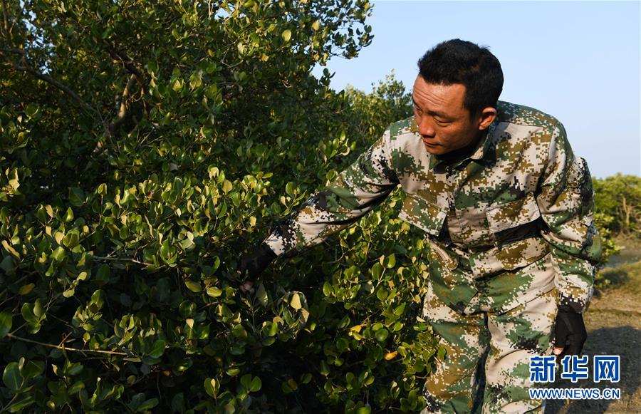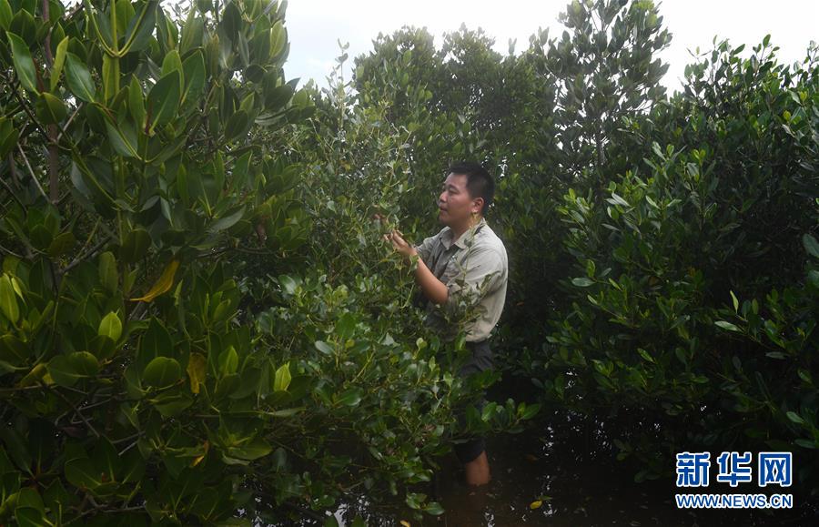 海南新盈紅樹(shù)林國(guó)家濕地公園巡護(hù)員兼監(jiān)測(cè)員羅理想在濕地公園內(nèi)的灘涂上做監(jiān)測(cè)(11月27日攝)。 羅理想2006年起開(kāi)始參與紅樹(shù)林濕地的保護(hù)工作,近年來(lái)他參加了很多關(guān)于濕地的培訓(xùn)。2016年,羅理想在工作中監(jiān)測(cè)到極危鳥(niǎo)種勺嘴鷸,當(dāng)時(shí)有許多媒體做了報(bào)道,后來(lái)他又配合專(zhuān)家在濕地公園里發(fā)現(xiàn)了拉氏紅樹(shù),“那個(gè)時(shí)候感覺(jué)自己的工作很有價(jià)值”,羅理想說(shuō)。 新華社發(fā)