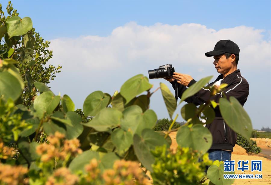 海南新盈紅樹(shù)林國(guó)家濕地公園巡護(hù)員兼監(jiān)測(cè)員羅理想在濕地公園內(nèi)拍攝紅樹(shù)林(12月11日攝)。 羅理想2006年起開(kāi)始參與紅樹(shù)林濕地的保護(hù)工作,近年來(lái)他參加了很多關(guān)于濕地的培訓(xùn)。2016年,羅理想在工作中監(jiān)測(cè)到極危鳥(niǎo)種勺嘴鷸,當(dāng)時(shí)有許多媒體做了報(bào)道,后來(lái)他又配合專(zhuān)家在濕地公園里發(fā)現(xiàn)了拉氏紅樹(shù),“那個(gè)時(shí)候感覺(jué)自己的工作很有價(jià)值”,羅理想說(shuō)。新華社記者楊冠宇攝