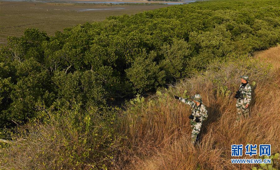 海南儋州新英灣紅樹(shù)林市級(jí)自然保護(hù)區(qū)護(hù)林員陳正平(前)和同伴巡護(hù)保護(hù)區(qū)內(nèi)的紅樹(shù)林(12月9日攝)。陳正平2010年開(kāi)始在保護(hù)區(qū)工作,他將工作發(fā)展成愛(ài)好,廣泛參加各種培訓(xùn)和業(yè)內(nèi)交流。他在工作中拍到瀕危鳥(niǎo)類(lèi)白肩雕出現(xiàn)在海南的照片,這刷新了海南省的鳥(niǎo)種記錄。新華社記者楊冠宇攝