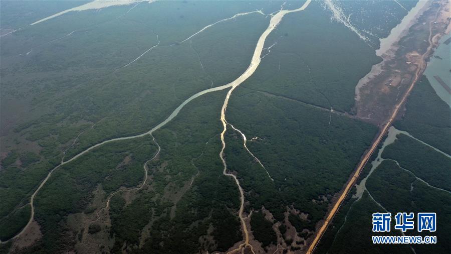 12月21日無人機拍攝的廣西合浦縣黨江鎮(zhèn)更螺圍出??谝痪啊6?,廣西廉州灣海域風光別致。新華社記者張愛林攝