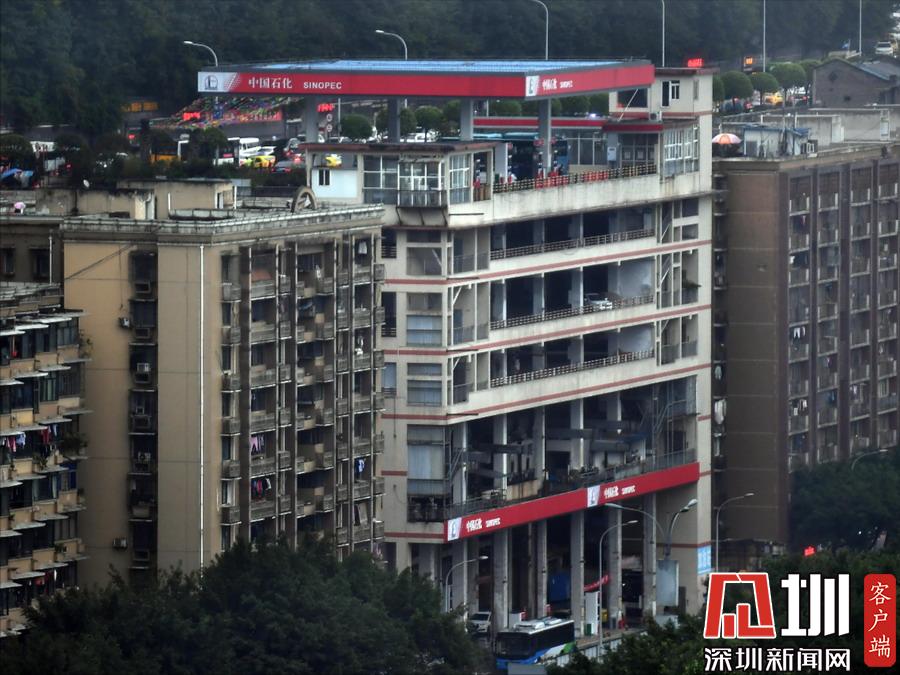 2019年11月24日,重慶渝中區(qū),一棟大樓的一樓是加油站,六樓樓頂還是加油站,讓人稱(chēng)奇。