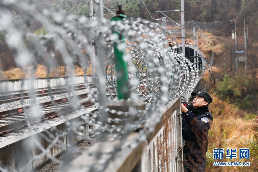 12月18日,常曉龍在排查鐵路沿線護欄的安全隱患。新華社記者張端攝