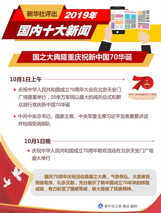 圖表:新華社評(píng)出2019年國內(nèi)十大新聞 新華社記者 秦迎 編制