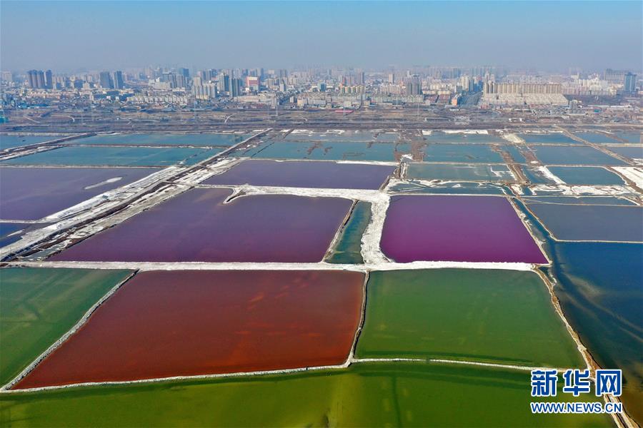 12月27日無人機(jī)拍攝的山西運(yùn)城鹽湖。 冬日時(shí)節(jié),從空中俯瞰位于山西省運(yùn)城市的鹽湖,景色如畫。 新華社記者曹陽攝
