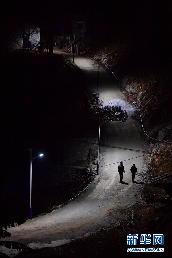 八好村駐村第一書記韋德王(左)和村干部去貧困戶家里走訪(1月6日攝)。新華社記者黃孝邦攝