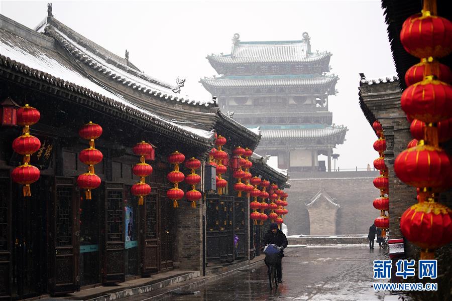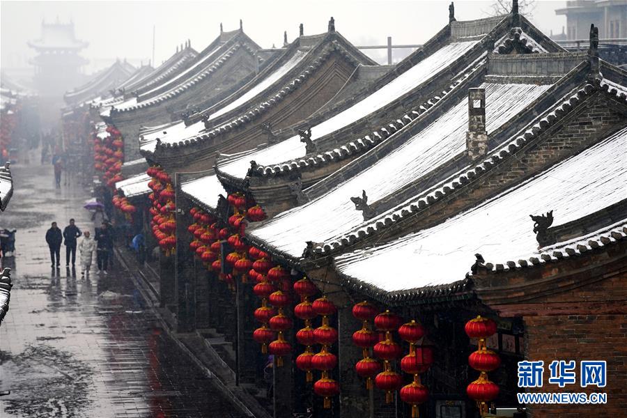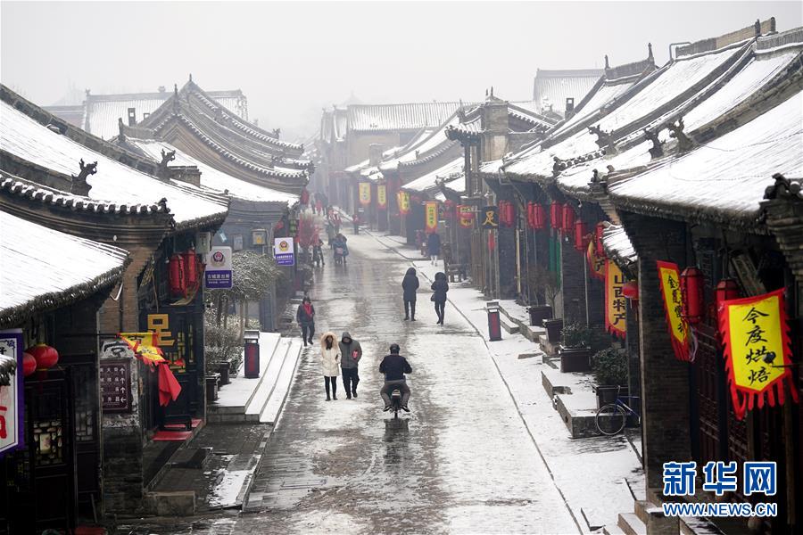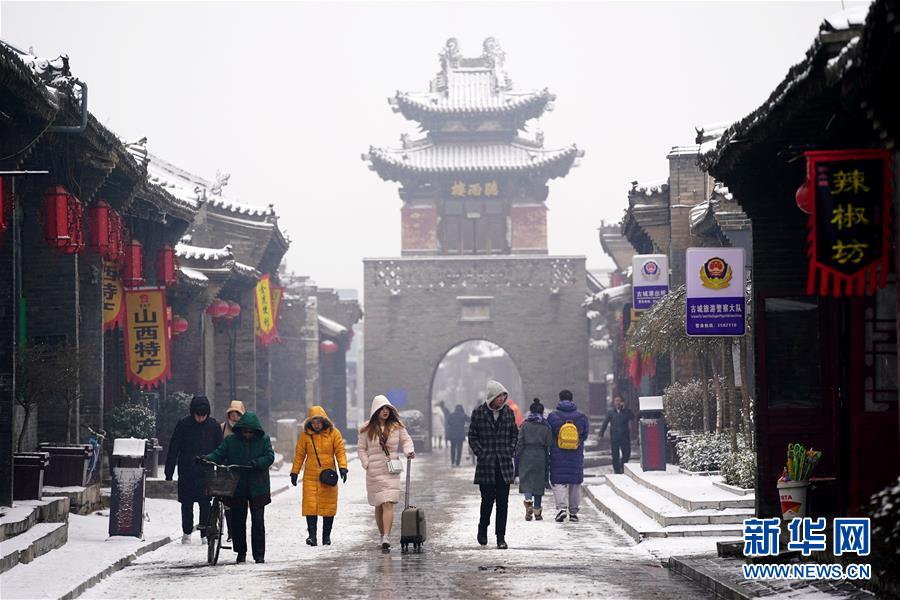 當(dāng)日,山西省平遙縣迎來(lái)降雪,雪中的平遙古城銀裝素裹,美景如畫。平遙古城是目前中國(guó)保存最完整的古代縣級(jí)城池之一,1997年被列入世界文化遺產(chǎn)名錄。