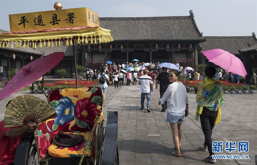 7月20日,游人在平遙古城縣衙內(nèi)參觀。