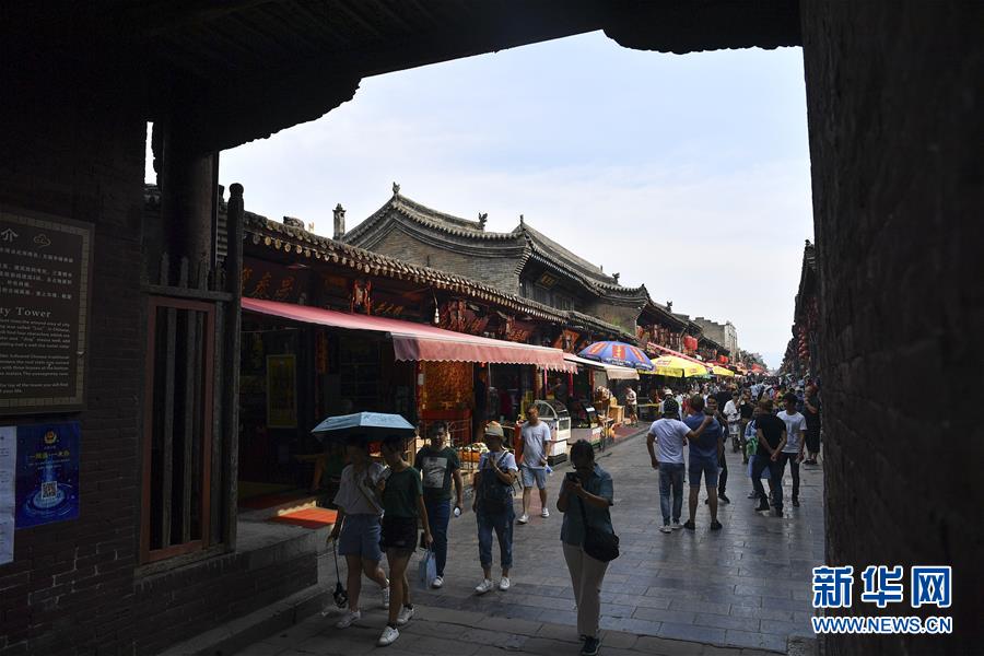 7月20日,游人在平遙古城區(qū)參觀。