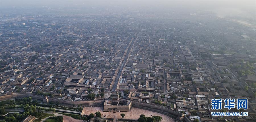 這是7月20日無(wú)人機(jī)拍攝的平遙古城北門。