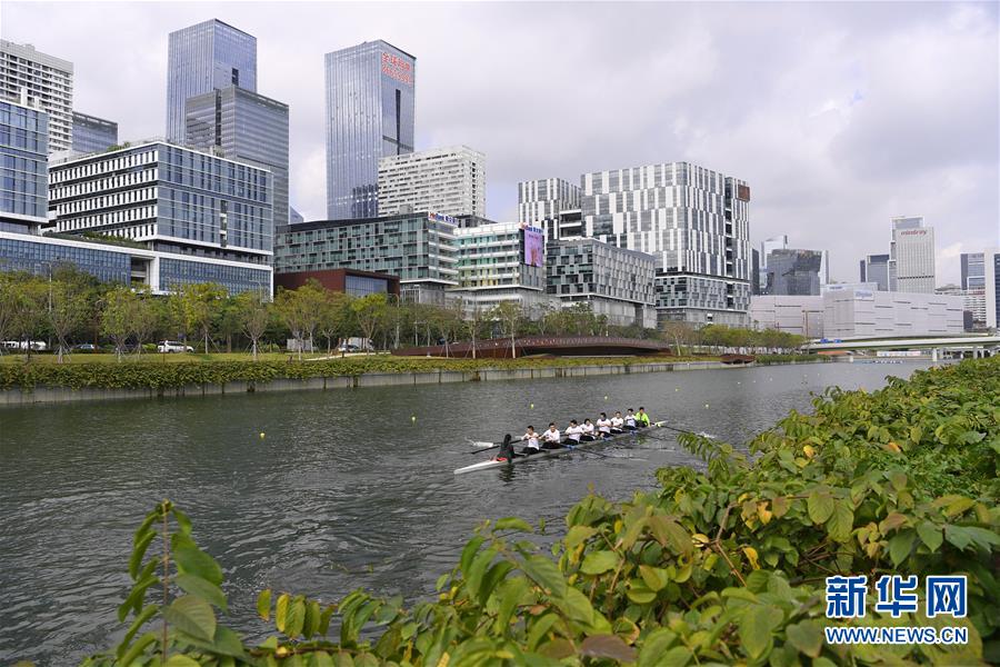 1月7日,賽艇愛好者在深圳大沙河上訓練。 新華社記者 梁旭 攝