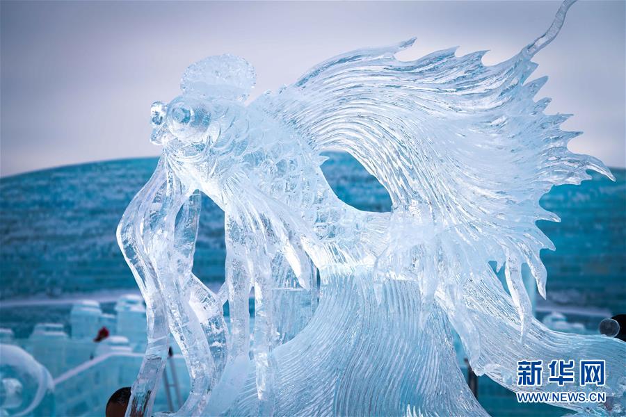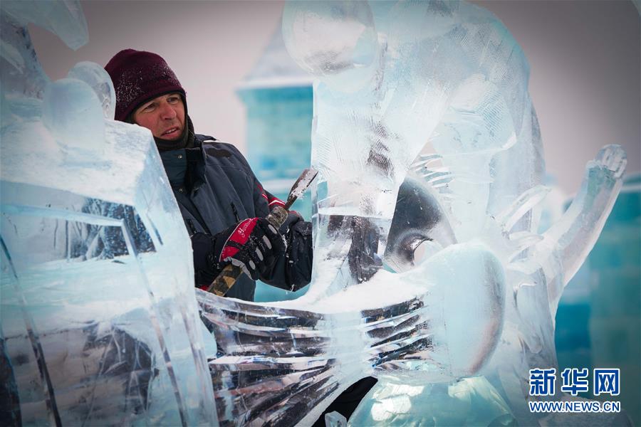 冰雕師在哈爾濱冰雪大世界內(nèi)雕刻出主題各異的冰雕作品(1月8日攝)。新華社記者王松攝