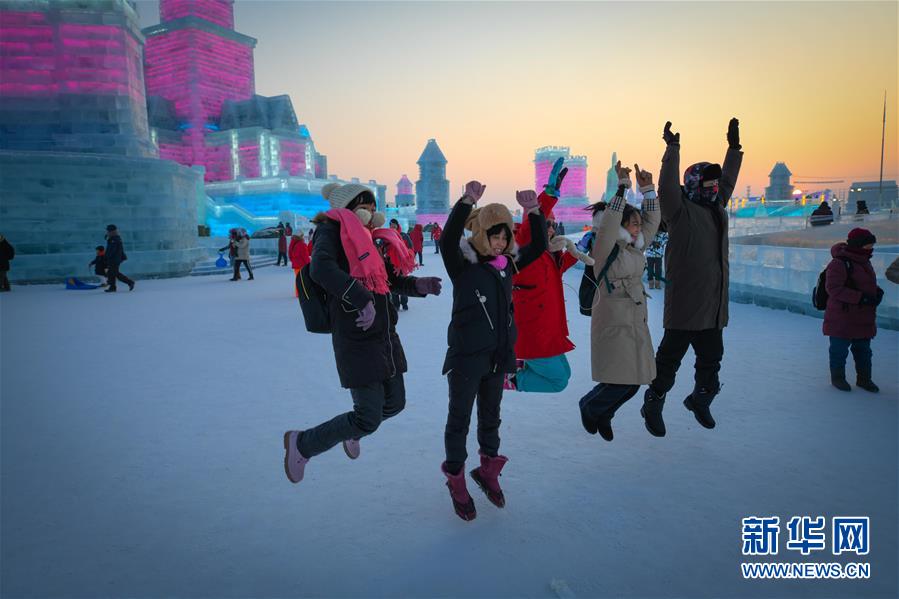 這是哈爾濱冰雪大世界園區(qū)中的景觀(1月5日攝)。每到冬季,天氣寒冷的冰城哈爾濱陸續(xù)迎來(lái)各類(lèi)冰雕雪雕賽事。從2019年12月7日起,采冰工人們?nèi)找共杀\(yùn)冰、冰景雪雕藝術(shù)家精心雕琢,這些“冰雪造夢(mèng)者”們?cè)趪?yán)寒天氣中辛苦付出,讓一座“冰雪之城”在松花江畔拔地而起,向來(lái)自世界各地的游客展現(xiàn)浪漫絢麗的冰雪奇觀。新華社記者王松攝