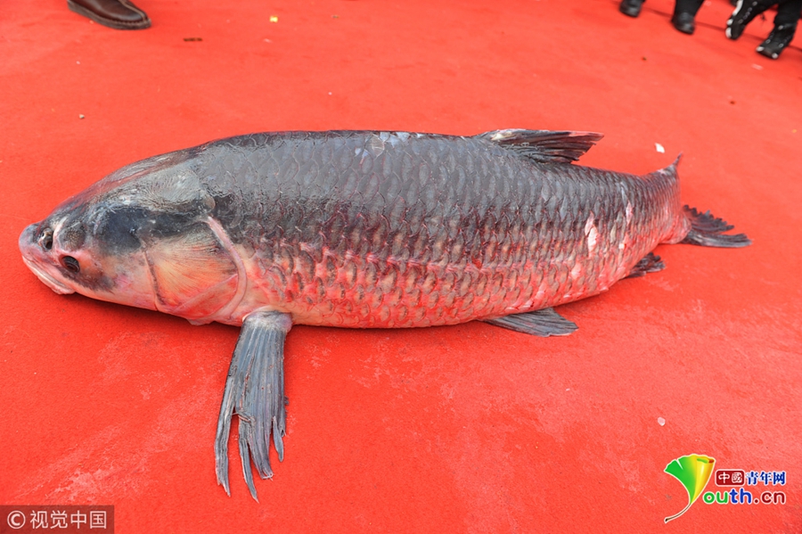 1月6日,安徽省阜陽(yáng)市潁上縣八里河漁場(chǎng)正式開(kāi)始進(jìn)行冬季大捕魚,捕獲的一條重達(dá)78斤的“頭魚”拍出88萬(wàn)元,現(xiàn)場(chǎng)吸引眾多客商和廣大群眾觀看。據(jù)悉,此次所得拍賣款全部用于當(dāng)?shù)孛撠毠?jiān)。圖片來(lái)源:視覺(jué)中國(guó)