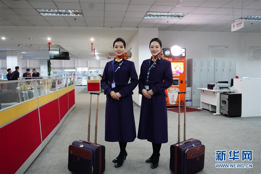 1月10日,天津航空乘務(wù)員付紅宇(左)和同事陶鑫鑫準備前往機場。新華社記者王暉攝