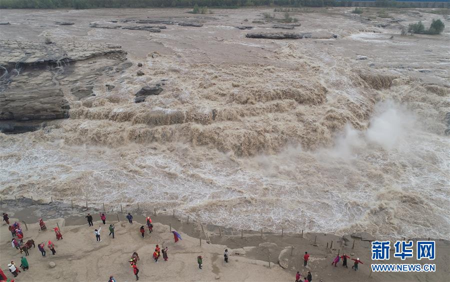 受近日降雨影響,位于山西吉縣的壺口瀑布水量增大,壯美的瀑布群景觀吸引眾多游客前來觀賞。新華社記者楊晨光攝