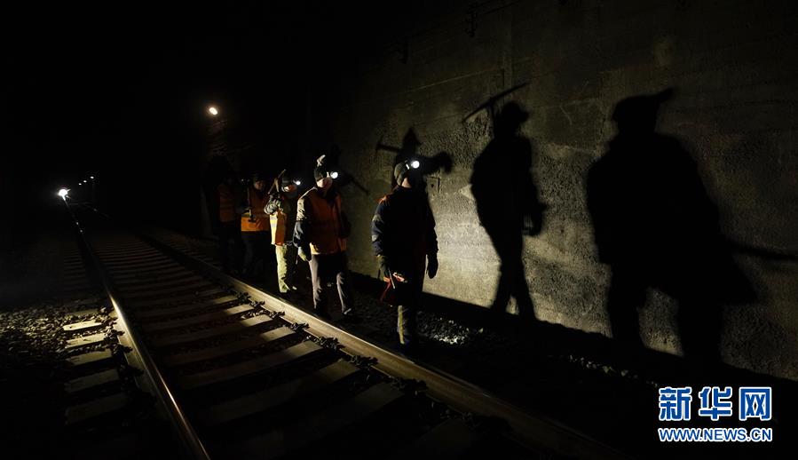 通化通信車間無線工區(qū)鐵路通信工人進(jìn)入全長7088米的灣灣川隧道作業(yè)(1月10日攝)。2020年春運(yùn)1月10日拉開帷幕。新華社記者許暢攝