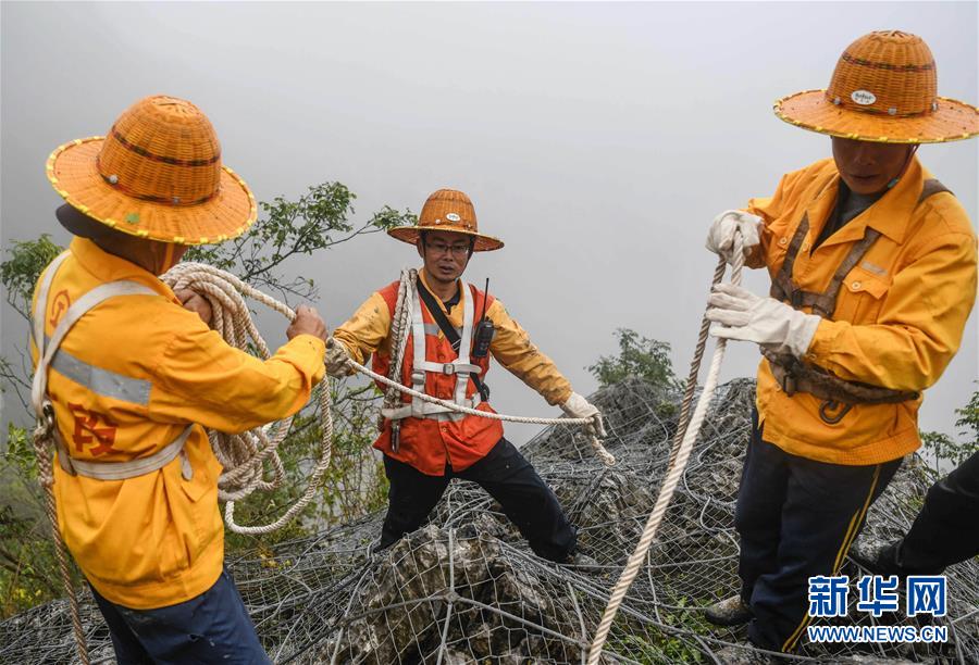 1月14日,百色工務段白水河橋隧工區(qū)班組工長王勇(右一)和同事在處理危石。在中國鐵路南寧局集團公司百色工務段白水河橋隧工區(qū),有一個由14名工人組成的班組。他們常年像“爬山虎”一樣行走攀爬在地形險峻、云霧繚繞的高山上,負責南昆鐵路轄區(qū)路段的搜山掃石工作,清除一切可能危害鐵路行車安全的因素,保障旅客出行安全。新華社記者張愛林攝