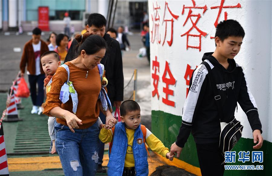 1月19日,乘客在??谛阌⒏圯喍纱a頭登船。 新華社記者 郭程 攝