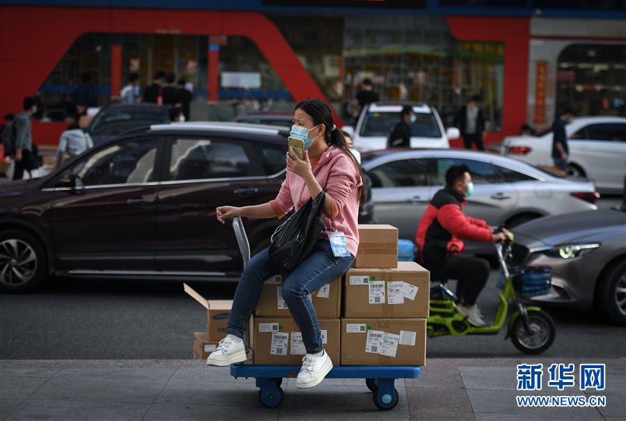 2月24日,在深圳華強(qiáng)北的步行街上,商戶、客戶和物流人員在室外忙碌。 新華社記者 毛思倩 攝