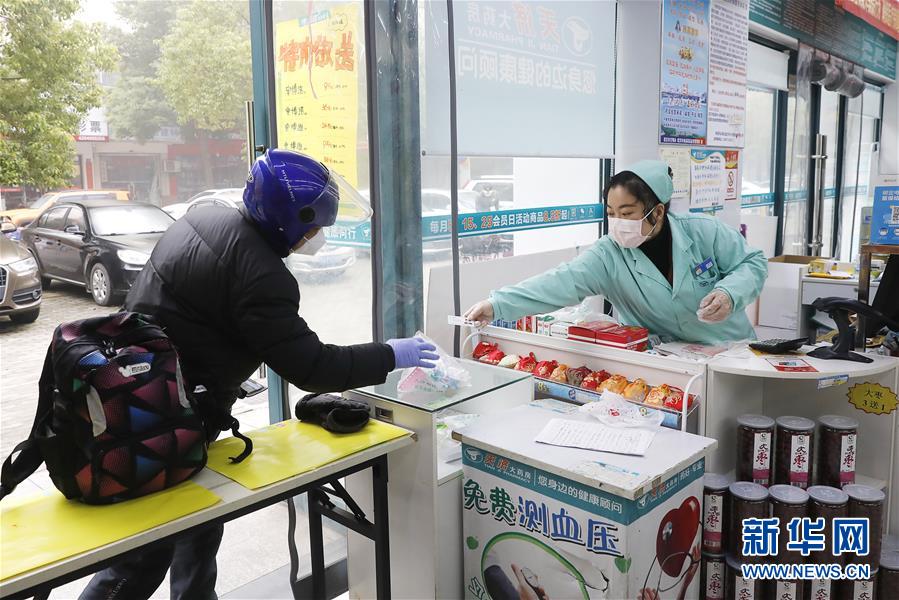 2月22日,王春波將藥品遞給前來買藥的外賣騎手。王春波是武昌天濟大藥房錦繡江南店的一名店員,在武漢下達“所有小區(qū)全面實施封閉管理”的禁令之后,很多居民買藥成了麻煩事,尤其是獨居的老年人。她知道后,主動聯(lián)系物業(yè)告知大家,如果有需要,她可以上門送藥。現(xiàn)在,她和同事每天要派送100多單藥品,大部分都是“三高人群”服用的藥。很多顧客很感激王春波,“幸虧你們一直開業(yè),東西也齊全,一分錢都沒漲!”王春波說:“關鍵時期,大家都是在相互幫忙,這就是很平常、很普通的一件事?!毙氯A社記者熊琦攝