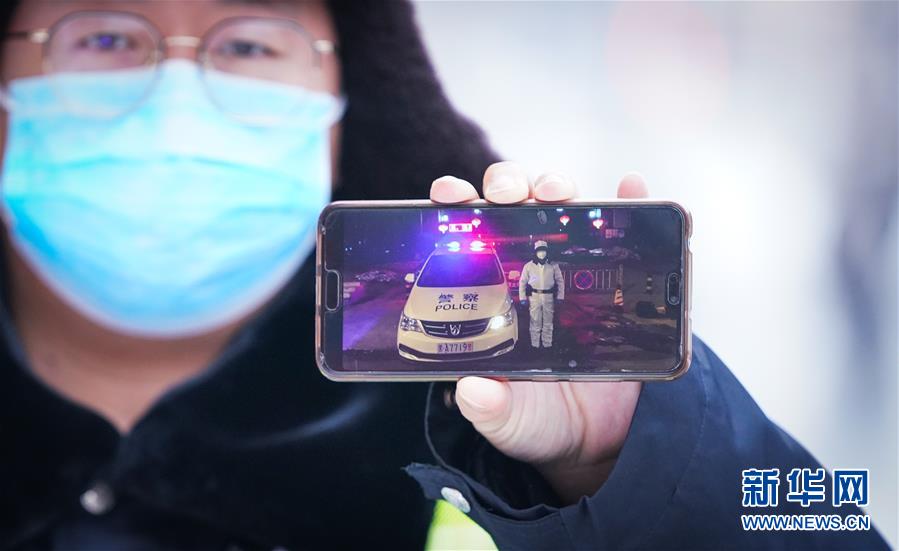 李可心展示手機(jī)里父親李論的工作照(3月1日攝)。父親李論是一名民警,負(fù)責(zé)對(duì)轄區(qū)內(nèi)疑似感染人員居住小區(qū)進(jìn)行封控、排查工作。新華社記者王松攝