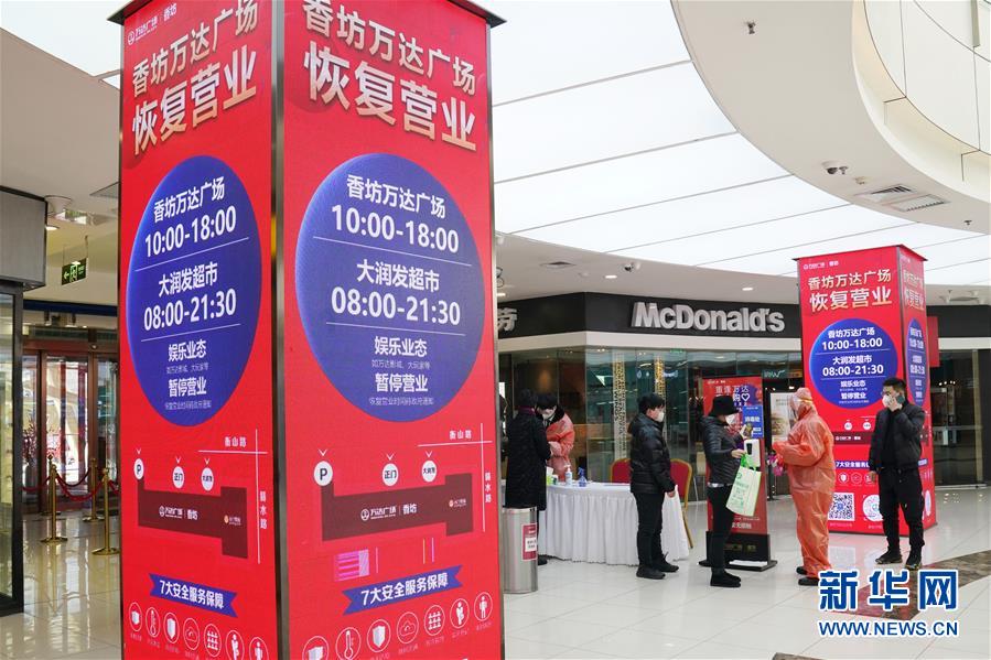 3月13日,在哈爾濱香坊萬達(dá)廣場內(nèi),工作人員在給進(jìn)店顧客測體溫、消毒。 近日,哈爾濱市多家大型商場陸續(xù)恢復(fù)營業(yè)。這些恢復(fù)營業(yè)的商場采取多種措施,從嚴(yán)細(xì)致做好疫情防控和安全風(fēng)險防范工作,為廣大顧客提供安全放心的購物空間。 新華社記者 王建威 攝