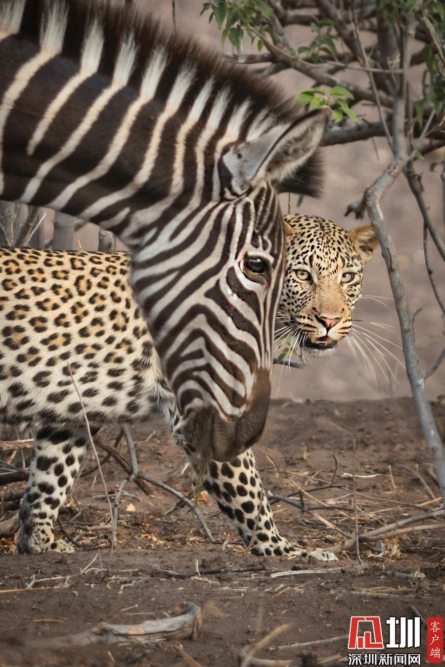 獵豹仿佛和斑馬成為了好友,緊緊跟隨這個(gè)新伙伴一起行走。