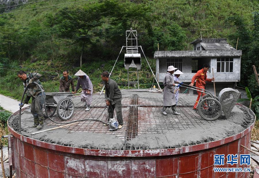 在廣西大化瑤族自治縣板升鄉(xiāng)弄勇村,群眾在修建家庭水柜(2017年9月2日攝)。廣西有近一半貧困人口生活在石漠化地區(qū),涉及數(shù)十個縣區(qū)。這里也是廣西飲水保障程度最低的地區(qū),解決貧困人口飲水問題是廣西脫貧攻堅戰(zhàn)“硬仗中的硬仗”?!笆濉币詠恚瑥V西加快實施農(nóng)村飲水安全鞏固提升工程。因地制宜,采取新建、擴建及管網(wǎng)延伸等多種措施,補齊貧困地區(qū)水利薄弱短板,進一步提升石漠化地區(qū)群眾飲水安全保障水平,助推脫貧攻堅。新華社記者黃孝邦攝