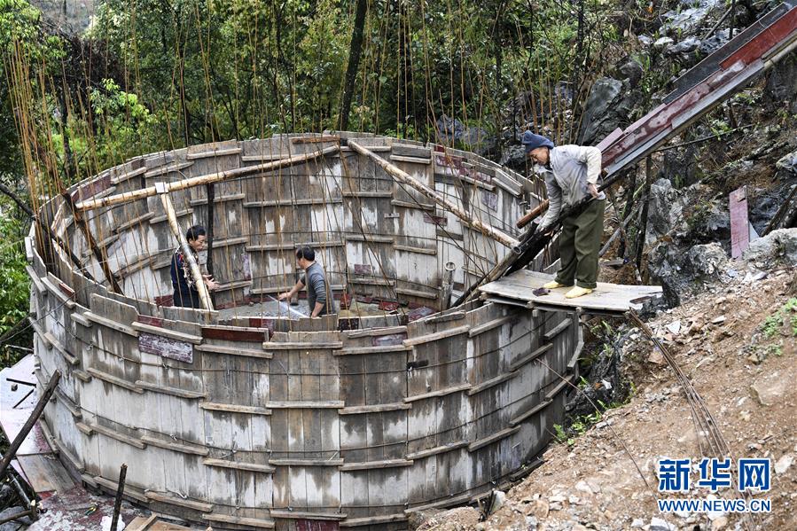 廣西都安瑤族自治縣隆福鄉(xiāng)的村民在修建家庭水柜(3月17日攝)。廣西有近一半貧困人口生活在石漠化地區(qū),涉及數(shù)十個縣區(qū)。這里也是廣西飲水保障程度最低的地區(qū),解決貧困人口飲水問題是廣西脫貧攻堅戰(zhàn)“硬仗中的硬仗”?!笆濉币詠?,廣西加快實施農(nóng)村飲水安全鞏固提升工程。因地制宜,采取新建、擴建及管網(wǎng)延伸等多種措施,補齊貧困地區(qū)水利薄弱短板,進一步提升石漠化地區(qū)群眾飲水安全保障水平,助推脫貧攻堅。新華社記者曹祎銘攝
